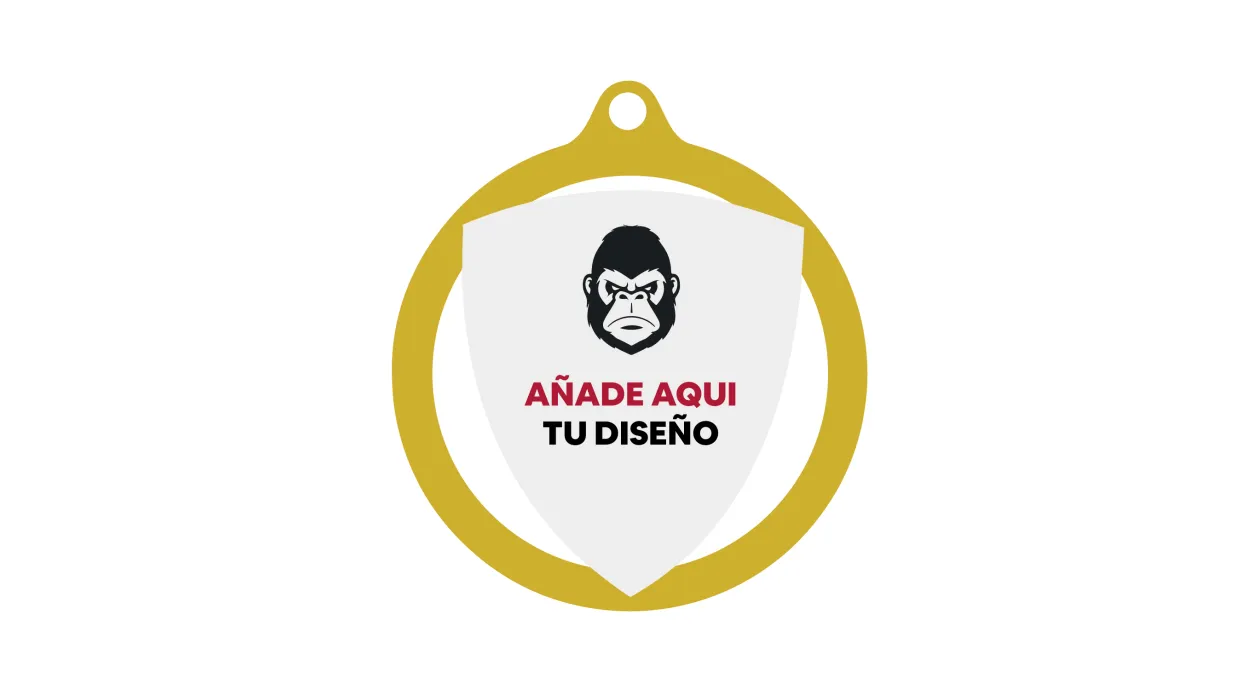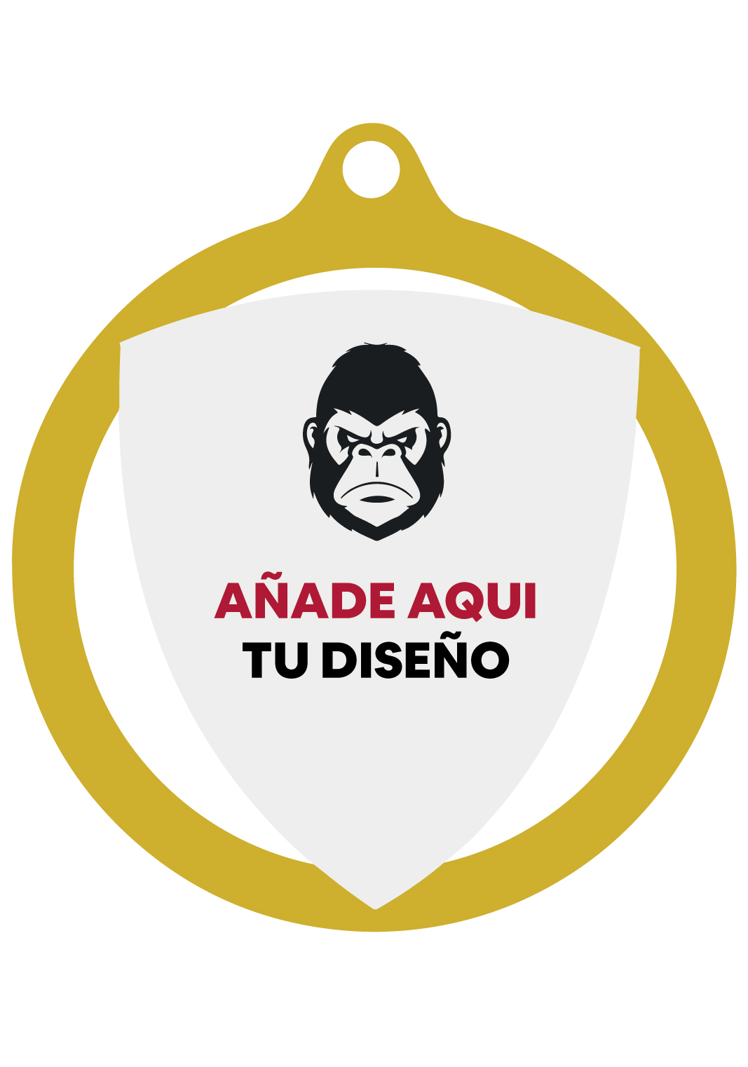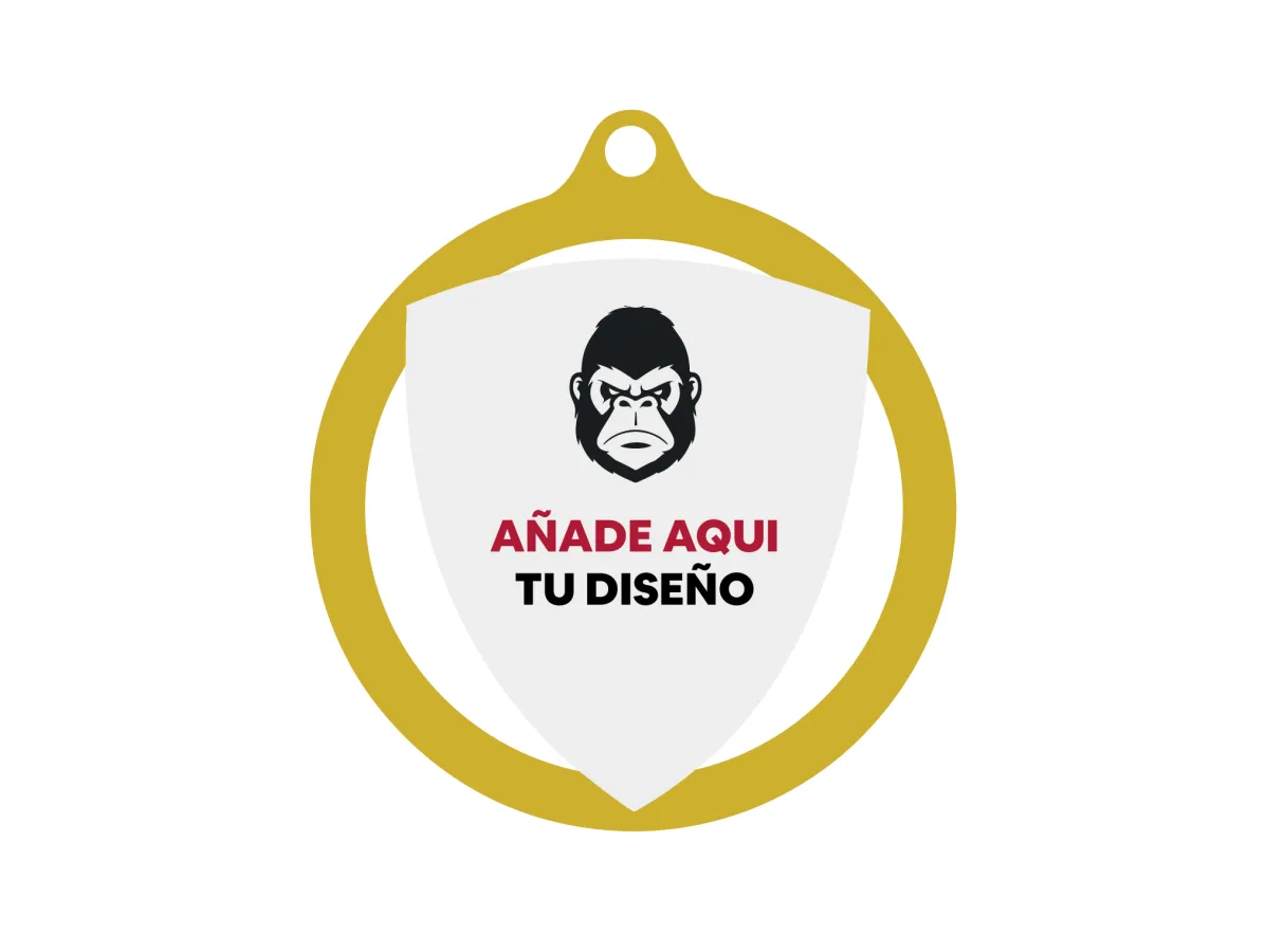 Medalla de metacrilato con forma de escudo y con un borde circular en el color que tu elijas, en color blanco de 60 mm de diámetro y con un grosor de 3mm, para grabación a color perfecto para textos, logos.